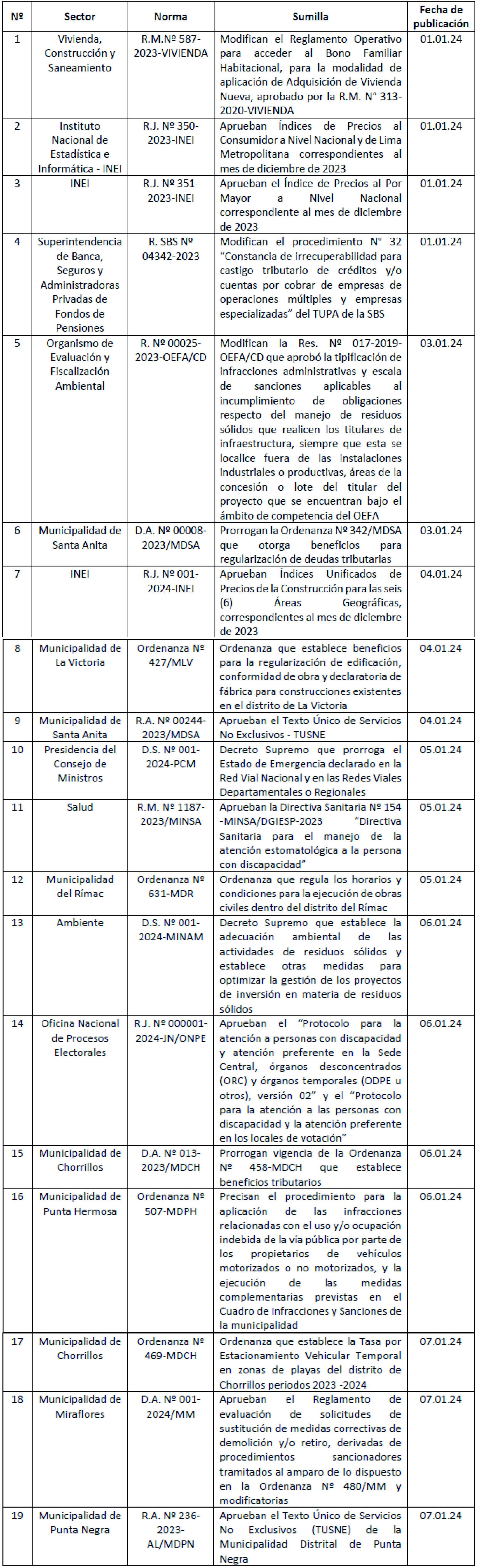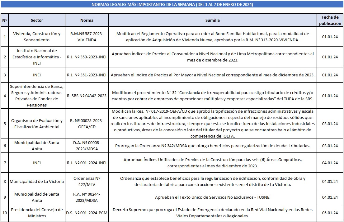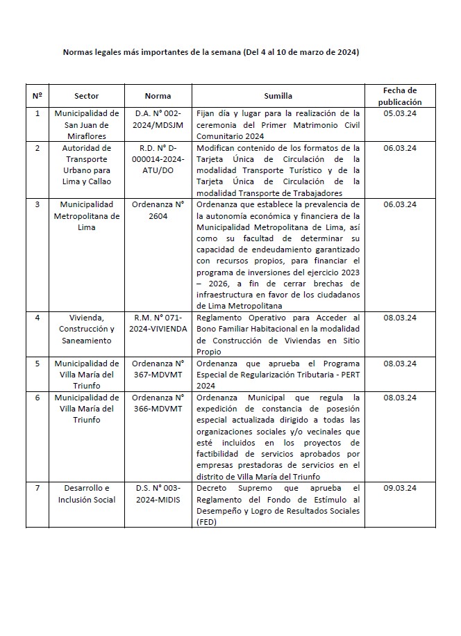 Con fecha 13 de enero de 2024 se publicó en el Diario Oficial El Peruano la Resolución Nº 001-2024-PCM/SGP, la misma que aprueba la Directiva Nº 001-2024-PCM/SGP denominada “Directiva que regula la creación implementación supervisión y evaluación de las Ventanillas Únicas”.